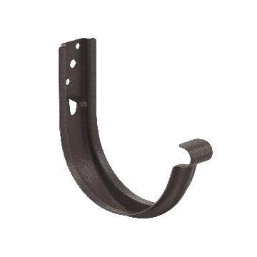 Крюк крепления желоба универсальный предназначен для крепления водосточного желоба по аналогии со стандартными крюками крепления желоба, и может быть использован как в качестве короткого крюка, так и в качестве длинного (при условии применения удлинителя крюка). Наличие изгиба для завитка желоба в передней части позволяет устанавливать желоба в крюки без отгиба установленного ранее фартука («капельника»). Наличие дополнительных ребер жесткости делает крюк очень прочным.