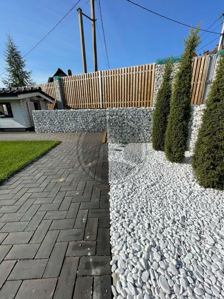 Самый доступный вариант – строительная галька, тоже фракцией 5-20 мм. Любой гравий для сада стоит перед засыпкой нужно хорошенько промыть, особенно, строительный. Рассыпать, разровнять – и отсыпка готова.